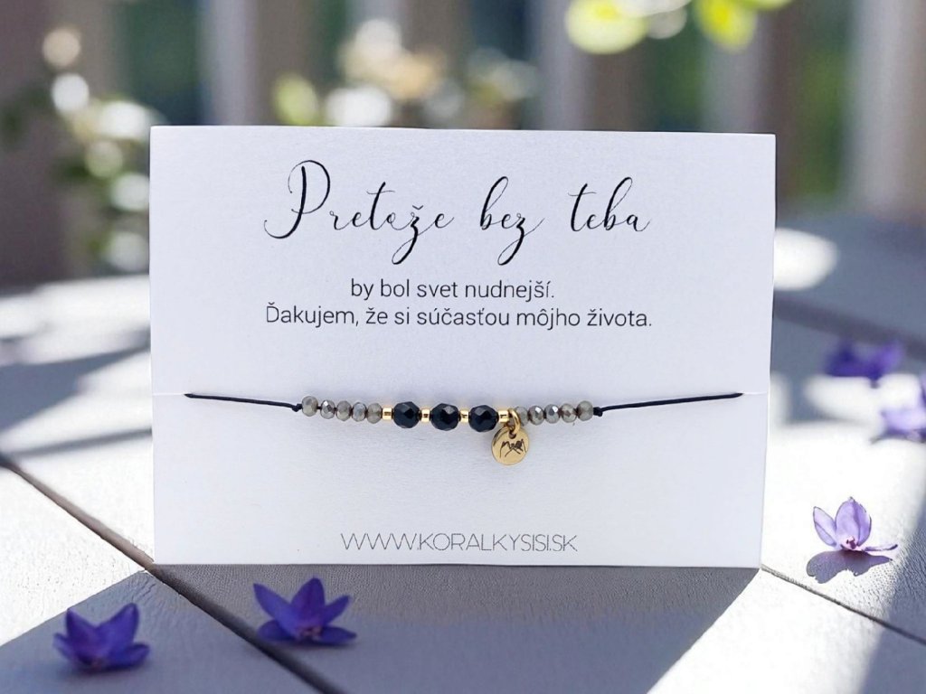 - Súčasťou balenia je perleťová kartička s textom.
