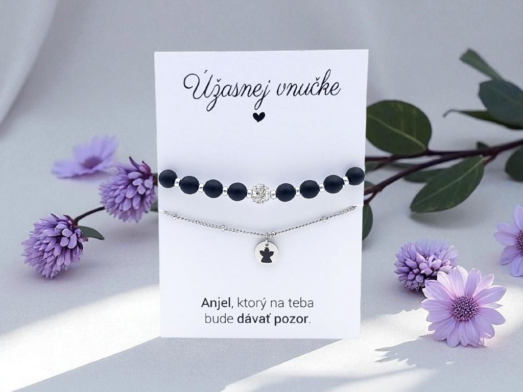 Darček, ktorý spája krásu a emóciu – oceľový náramok s anjelom a korálikový náramok tvoria harmonický pár pre každú vnučku.