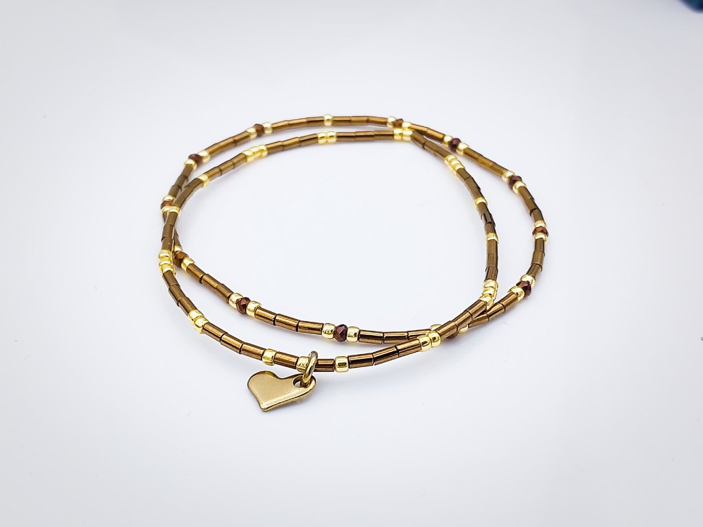 SET náramkov Hnedo-zlaté srdiečko