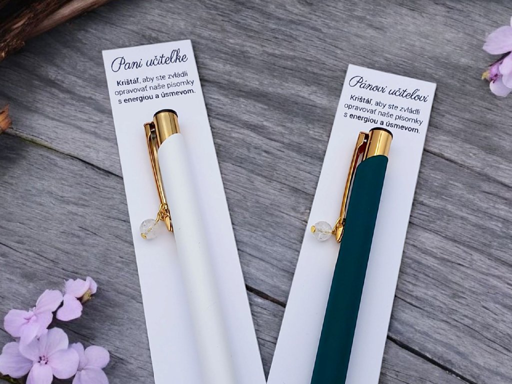 Pero zlaté s krištáľom pre energiu a úsmev (červená náplň)
